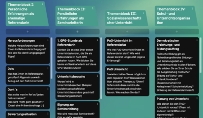 In einem digitalen Q&A haben Sie als Studierende die Gelegenheit, mit Seminarleiterin Bianca Fina-Milbradt über die zweite Phase der Lehramtsausbildung in Bayern ins Gespräch zu kommen. Als Lehrerin an einer mittelfränkischen Mittelschule beantwortet sie Ihnen all Ihre Fragen zur Ausbildung und Unterrichtspraxis als Lehrkraft für sozialwissenschaftliche Fächer.